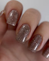 Wysokie stężenie brokatu może zapychać pędzelek podczas pracy. Aby tego uniknąć, przed nałożeniem odciśnij pędzelek przy otwieraniu butelki. Taka ilość brokatu zapewnia mocny efekt i dobre krycie.
