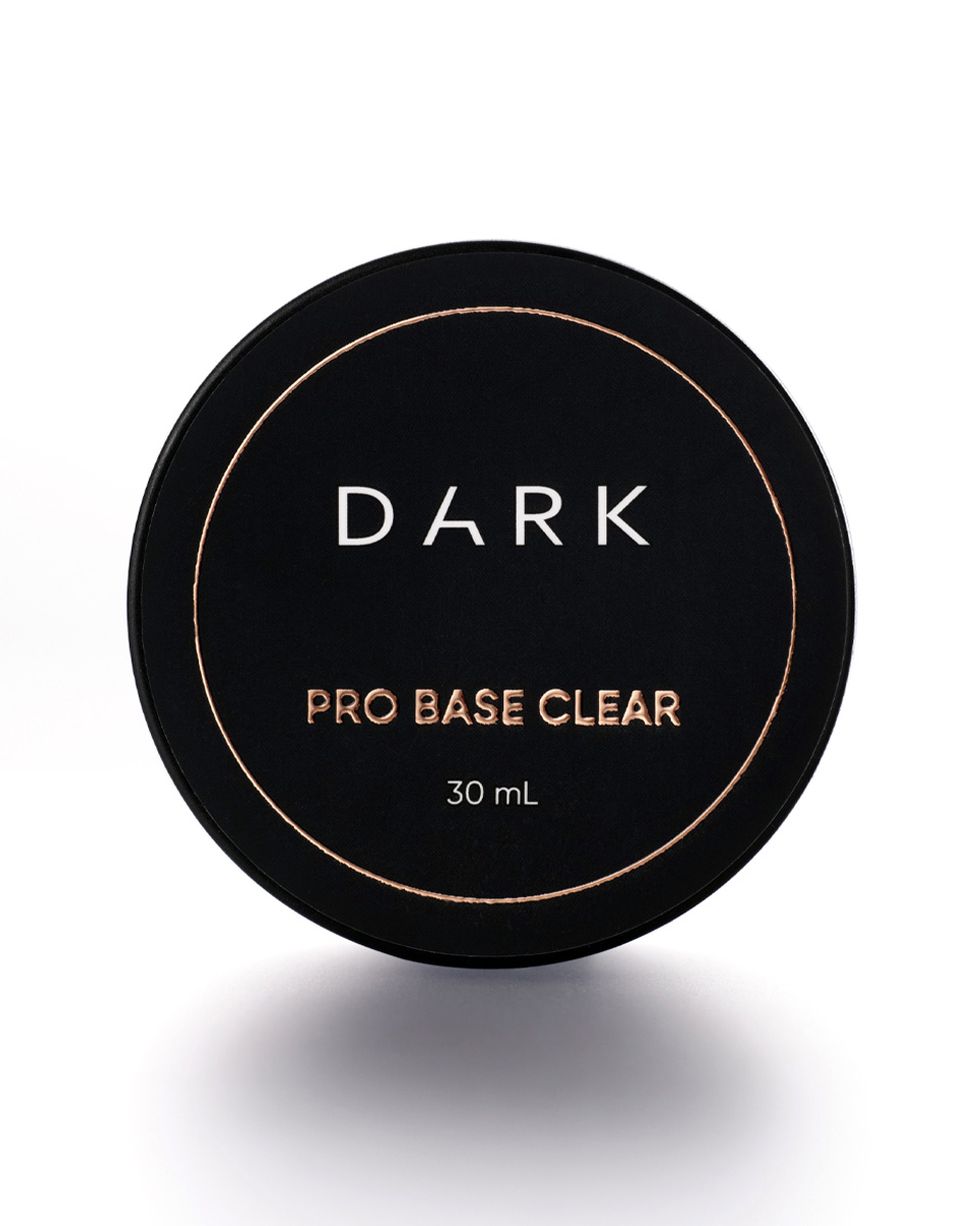DARK PRO BASE CLEAR to przezroczysta, niskokwasowa baza (pH 6,5) o średniej konsystencji, stworzona do łatwego wyrównania płytki paznokcia. Nie powoduje silnego pieczenia w lampie.