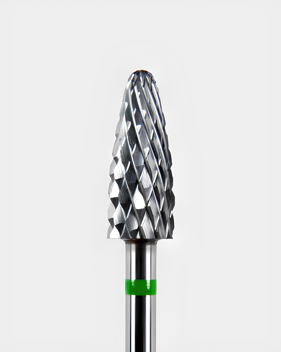 Dzięki kształtowi 'zaokrąglony stożek' i grubszej ziarnistości freza nadaje się do pracy z każdym rodzajem powłok, także twardych i grubych warstw.