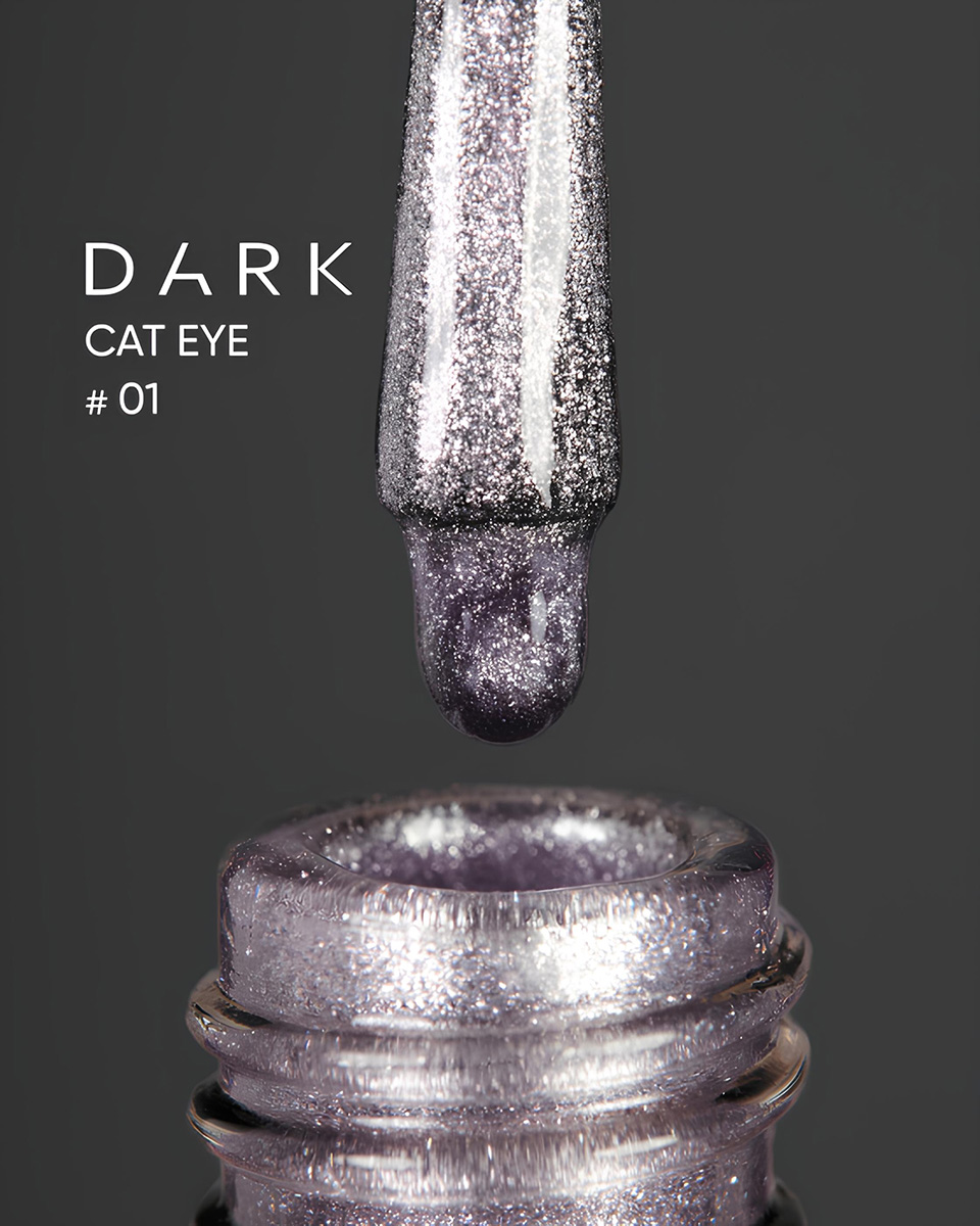 DARK GEL POLISH CAT EYE to półprzezroczyste kolorowe lakiery hybrydowe z efektem kociego oka, oferujące szeroką paletę i starannie dobrane odcienie dla każdego stylisty paznokci.