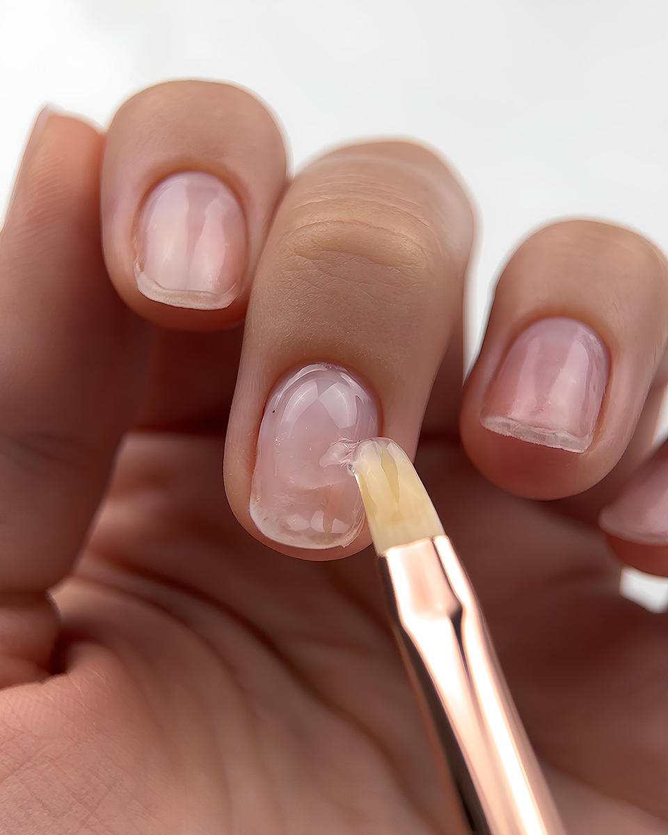 • Якщо виконується зміцнення - обов’язково випилюйте свій ніготь мінімум на 1 мм зсередини, щоб не було відшарування з вільного краю. Якщо довжина мінімальна - рекомендується запечатати зсередини торець нігтя топом;