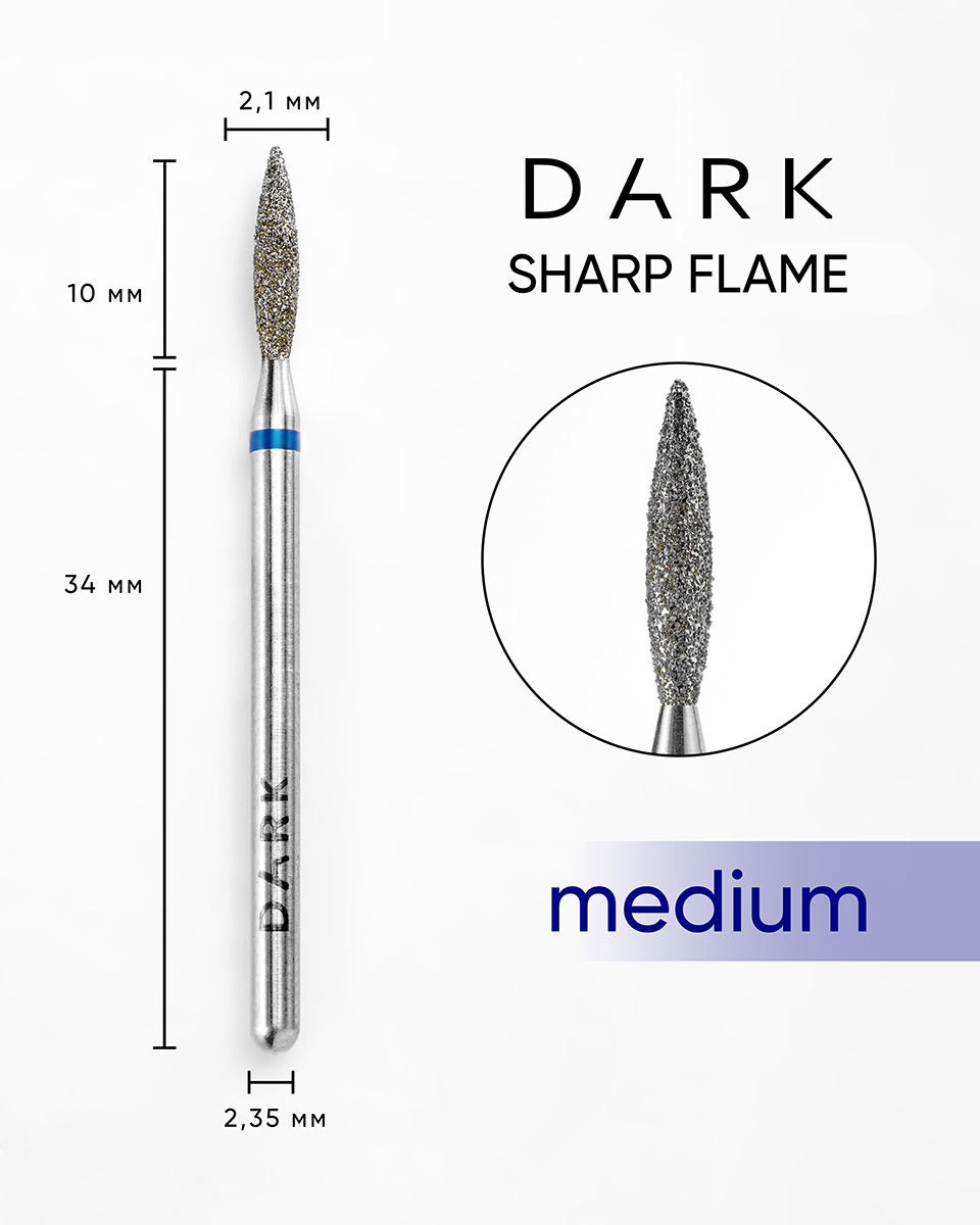 Фреза гостре полум'я допоможе обережно та швидко виконати манікюр та педикюр, у техніках апаратного та комбінованого манікюру/педикюру, гарно піднімає кутикулу, вичищає бічні валики і синуси, зашліфовує грубу шкіру. Підходить для новачків, а також для майстрів з досвідом роботи в манікюрі.
